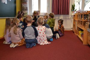 Die Fuchsgruppe beim Unterricht mit Joanna Czasnojc …und die Erzieherinnen schauen zu.