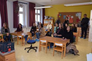 Die Besucherinnen nahmen an einer Unterrichtsstunde teil, erfuhren im Gespräch einiges über Theorie und Praxis und besichtigten die kindgerecht eingerichteten Räume, wobei die hoch angebrachten Türklinken für Belustigung sorgten.